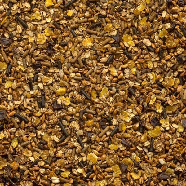 Sudėtis: miežių dribsniai, kukurūzų dribsniai, pūsti miežiai, liucerna, saldžiavaisio pupmedžio sėklos, melasa, kviečių sėlenos, kviečių atsijos, saulėgrąžų aliejus, kalcio karbonatas, saulėgrąžų rupiniai, miežiai, kalcio fosfatas, kviečiai, 0,5 % žolelių (dilgėlių lapai, zefyrų lapai, eglių spygliai, zefyrų šaknys, gelsvės šaknys, kiečiai, žalios avižos, petražolių lapai, erškėtuogių lukštai, ožragės sėklos, ajerų šaknys, rykštenės, hibisko žiedai, islandinės samanos, kiaulpienės šaknys), kukurūzai.