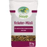 GALOPP KRAUTERMUSLI. Šiam žolelių musliui buvo naudojamos grynos natūralios žolelės ir perdirbti grūdai. Siekiant apsaugoti arklio skrandį, sąmoningai vengta pridėti eterinių aliejų. Muslio sudėtyje esantys maisto komponentai kartu su natūraliomis žolelėmis skatina virškinimą ir medžiagų apykaitą. Muslio ir žolelių mišinys taip pat teigiamai veikia nervus, odą, sąnarius, plaučius, širdies ir kraujagyslių sistemą bei vaisingumą. Idealiai tinka labai stresą patiriantiems, sergantiems ar seniems arkliams.
