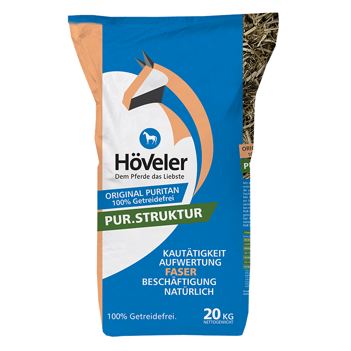 Höveler PUR.STRUKTUR – naujas PUR.ITAN linijos papildymas – struktūrizuotas pašaras, kuris praturtina arklio racioną atrinktais, aukštos kokybės skaidulų šaltiniais.