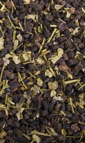 Sudėtis: ekstrahuotos saulėgrąžų sėklos, saulėgrąžų lukštai, obuolių išspaudos, cikorijos minkštimas, liucernos miltai, algarroba, žirnių dribsniai, morkų dribsniai, sutrintos linų sėmenys, saulėgrąžų aliejus, kalcio karbonatas, džiovintos alaus mielės, sėmenų išspaudos, sėmenų aliejus, sėmenų sėklos, sėmenų aliejus, magnio oksidas.