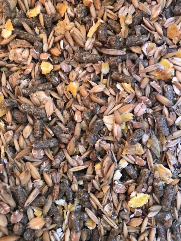 Sudėtis: avižos, avižiniai dribsniai, kukurūzų dribsniai, kviečių sėlenos, speltos lukštai, miežių dribsniai, kviečių dribsniai, liucernos rupiniai, kviečiai, burokėlių melasa, kalcio karbonatas, linų sėmenų aliejus, natrio chloridas.