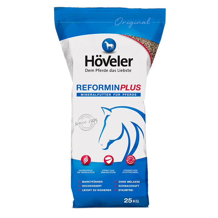 HÖVELER Reformin Plus yra aukštos kokybės vitaminų, mineralų ir mikroelementų kompleksas, sukurtas žirgų sveikatai ir našumui užtikrinti. Naujausi moksliniai tyrimai ir praktinė patirtis rodo, kad su įprastu pašaru arkliams dažnai trūksta būtinų maistinių medžiagų.