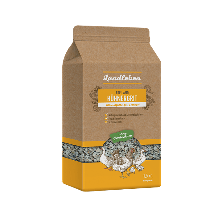 Landleben Hühnergrit – gardus, iš natūralių ingredientų pagamintas mineralinis lesalas, sukurtas specialiai naminiams paukščiams.