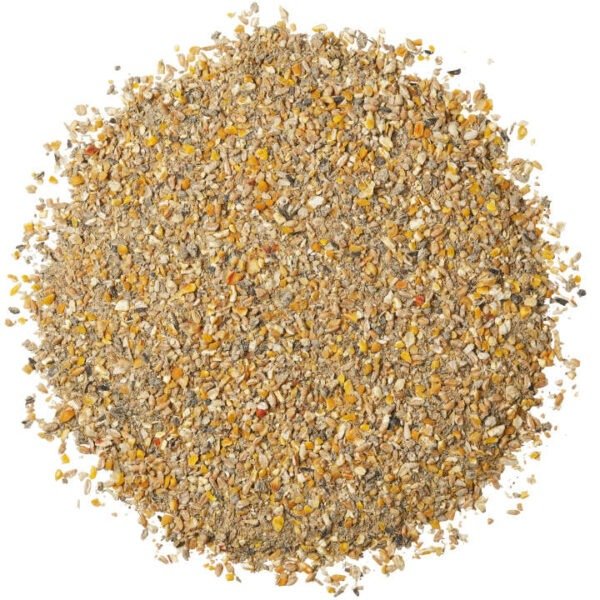 Sudėtis: Kukurūzų, kviečių, skaldytų žirnių, saulėgrąžų ekstrakto rupiniai (iš lukštentų sėklų), braziliškų sojų pupelių pašarų (iš lukštentų sėklų), kalcio karbonatas, kviečių sėlenos, mišrios riebalų rūgštys, monokalcio fosfatas, sėmenų aliejus, natrio chloridas, natrio bikarbonatas.